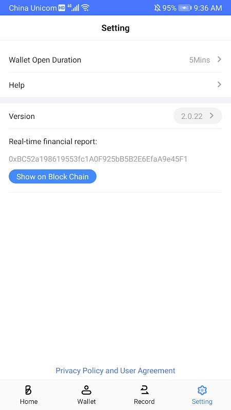 Fourthly, after save you saving Account-Password encrypted data to block chain , you can synchronize these data anytime and anywhere, even you can see them on some block chain explorer such as :etherscan.io but these data is encrypted by your private key.So before you look the Account-Password value, you should decrypt your block chain account and then the app can use you private key to decrypt the data. For the sake of safety, the private key must be remove from memory sometimes later, the default duration of private key opened is 5 minutes, you can change it in the setting tab page.