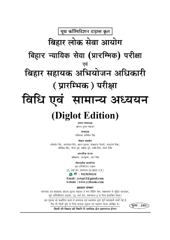 Yct expert team launches one of the best book for BPSC (J) & BPSC (APO) Pre Exam (2020 - 21) .