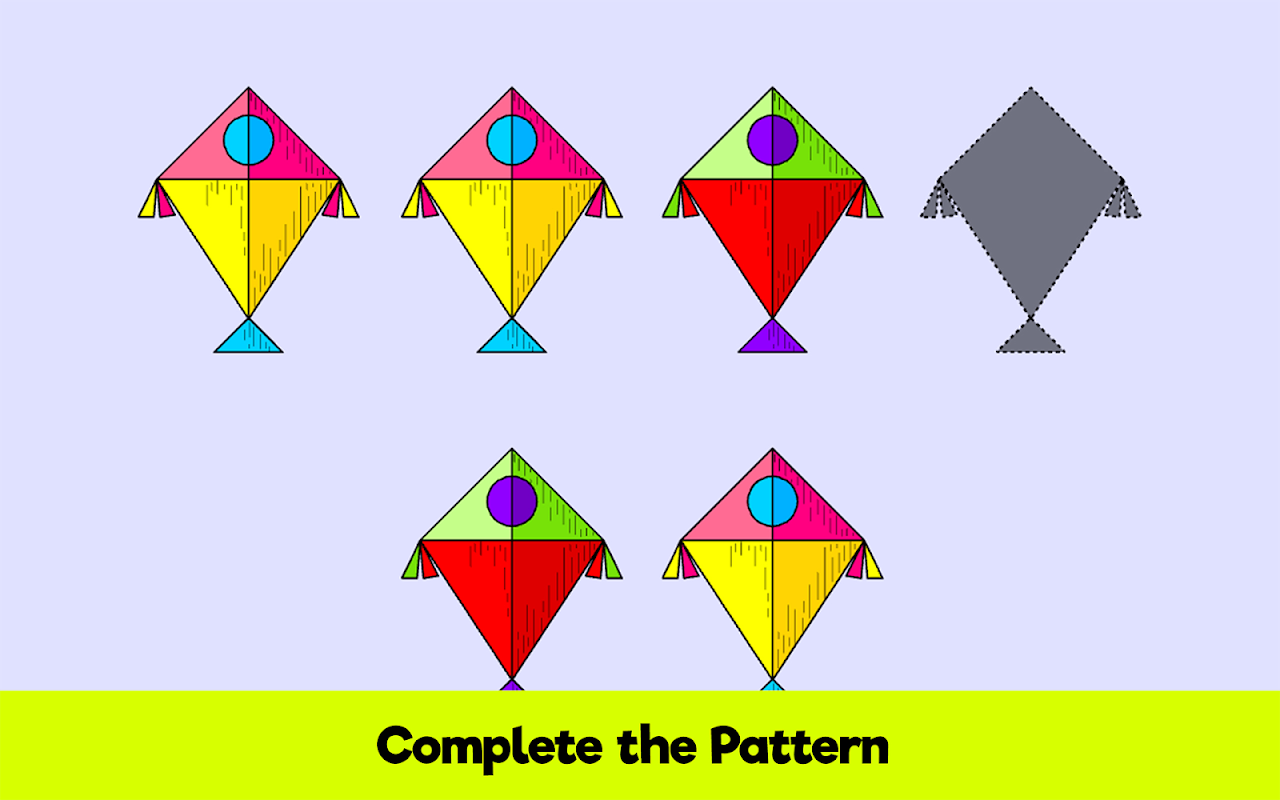 *Patterns: Complete the pattern by dragging the right object. Kids will learn to think carefully and use logic!