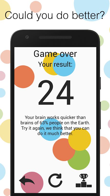 The process of playing: The bubbles with the figures inside are generated on the screen of your smartphone. Your task is to click on the bubbles in ascending order of their values. The bubbles of different colors are arranged on the screen in random order. Also you have lives. So, try to do everything right. If you make a mistake, don’t worry, you will find them in some time. But hurry up! Don’t forget about your time which is limited. You can compare your brain speed with friends and make your own scoreboard of the best results.
