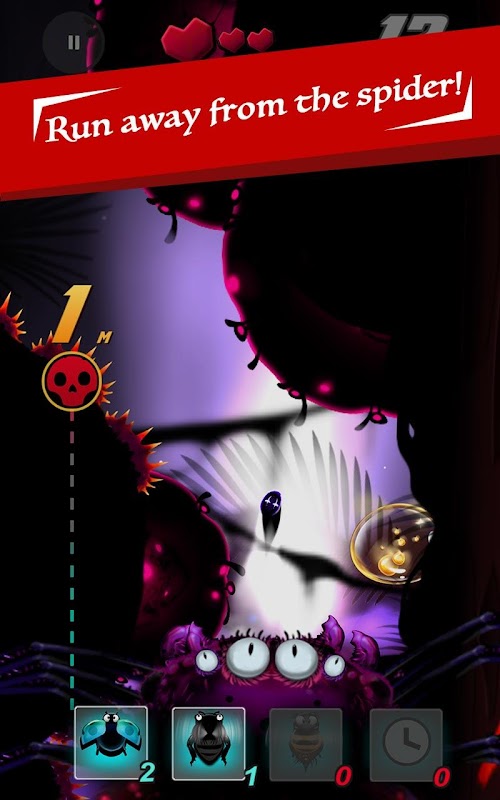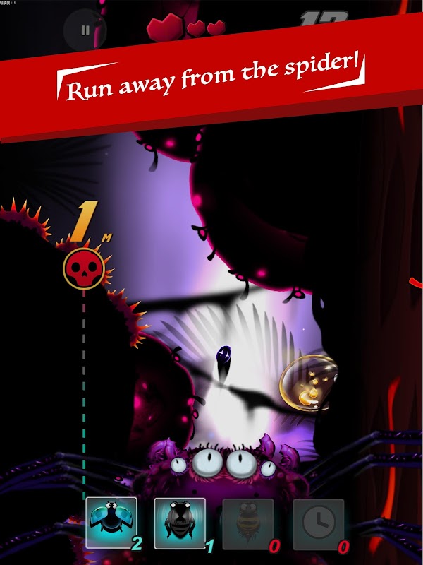 There will be many obstacles blocking your escape, and you must stay ahead of the giant spider moving at you quickly from behind.
