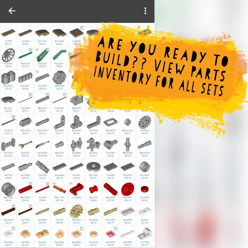 - View parts inventory button to check that you have all the needed parts to start your build.