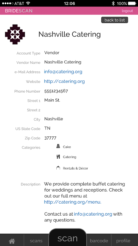 BrideScan jest przeznaczony do łączenia się i wykwalifikowanych specjalistów ślubnych narzeczonych w oparciu o potrzeby, dostępność oraz informacje kontaktowe. Teraz możesz zostać zorganizowane podczas każdego pokazu ślubnej! Wystarczy zeskanować kod kreskowy uczestniczącego partii natychmiast wymienianie informacji kontaktowych i inne ważne dane przechowywane na Twoim koncie. Zaloguj się do swojego konta online dla pełnego dostępu do wszystkich kontaktów już związane z na niedawnej wystawie ślubnej!