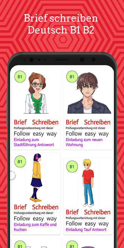 Diese App wird Ihnen bei der B2-Prüfung sehr helfen. Deutsch ist eine der logischsten Sprachen, die App gibt Ihnen eine gute Vorstellung davon, wie man Briefe schreibt. Wenn Sie Brief schreiben Deutsch a1, Brief schreiben Deutsch a2, Brief schreiben Deutsch b2 gelernt haben, wird Ihnen diese Anwendung sehr helfen.