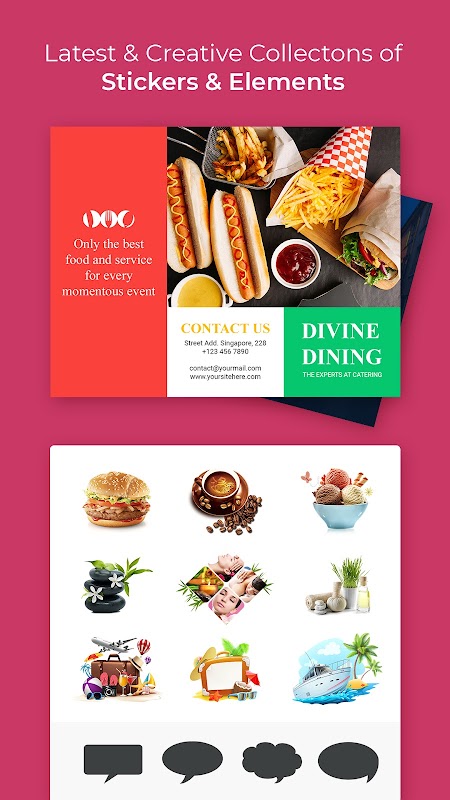Ta aplikacja do tworzenia broszur jest przydatna do marketingu w mediach społecznościowych i projektowania graficznego broszur, ulotek, infografik, plakatów, reklam, menu restauracji i innych.