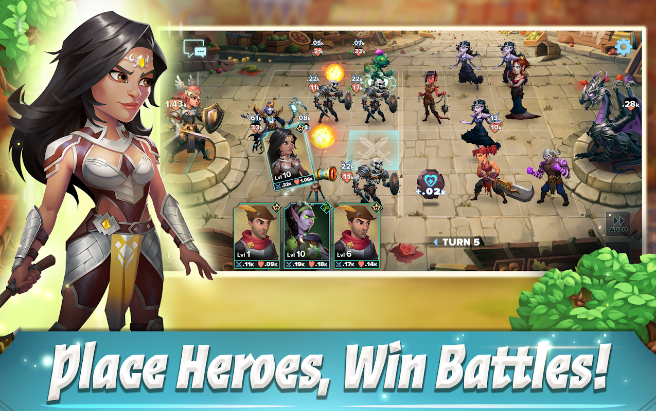 Twoja drużyna bohaterów potrzebuje Ciebie i Twojej elitarnej strategii taktycznej, gdy toczą wojnę w całym królestwie! Od imperialnej tarczy Garnizonu po wiecznie żywego ducha Maleusa, musisz zjednoczyć frakcje w całym królestwie, aby wygrać wojnę i przywrócić porządek. Wyposaż swoją drużynę w potężny sprzęt, walcz w taktycznych siatkach u boku swojego mistrza i pozwól swoim bohaterom walczyć dla ciebie, gdy gra jest bezczynna w tej epickiej grze RPG dla wielu graczy!
