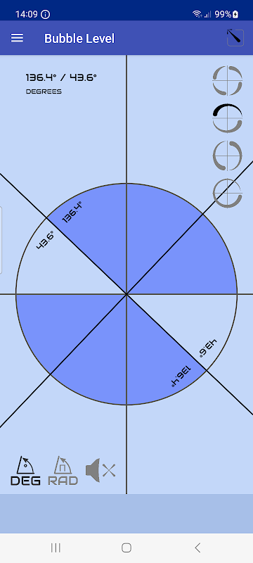 📈 Odczyty w czasie rzeczywistym: kąty obserwacji ożywają dzięki odczytom w czasie rzeczywistym. Gdy dokonasz regulacji, aplikacja „Bubble Level” reaguje natychmiast, zapewniając dynamiczną wizualną reprezentację ustawienia kąta.