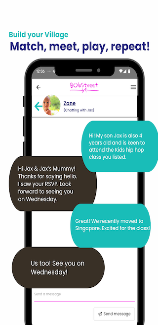 Tutaj w BubStreet naprawdę rozumiemy to powiedzenie i żyjemy zgodnie z nim. Rodzicielstwo i wychowywanie dzieci może izolować, zwłaszcza gdy jesteś nowy w mieście lub okolicy. Stworzony dla i przez rodziców w Singapurze, założyliśmy BubStreet, aby stworzyć bezpieczne miejsce do łączenia się z innymi rodzinami w podobnej podróży, aby odkrywać nowe przyjaźnie, planować terminy zabaw i brać udział w zajęciach w pobliżu!