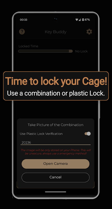 Implementacja dla zamków Chaster, dodaj DominatedBot do swojego zamka jako posiadacza klucza i podłącz swój zamek w aplikacji Buddy.
