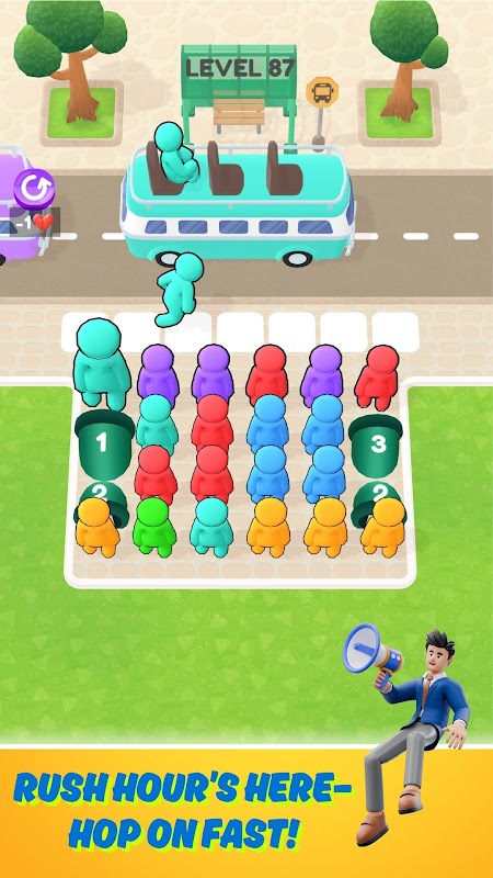 • Kolorowa grafika i angażujące otoczenie — zanurz się w żywych, kolorowych środowiskach, które sprawiają, że każdy poziom wydaje się świeży i ekscytujący. Autobusy, pasażerowie i tła są pięknie zaprojektowane, aby stworzyć wizualnie atrakcyjne doświadczenie.