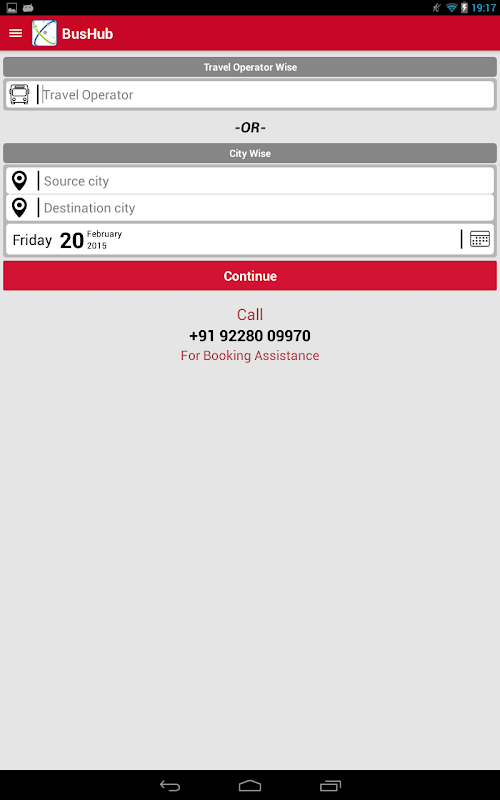 BusHub helps you plan your journeys, provides ‘next bus’ times for all leading bus travel operators throughout India. It also provides real time info whereas available like vacancy, fares, seat selection, boarding points, amenities etc.