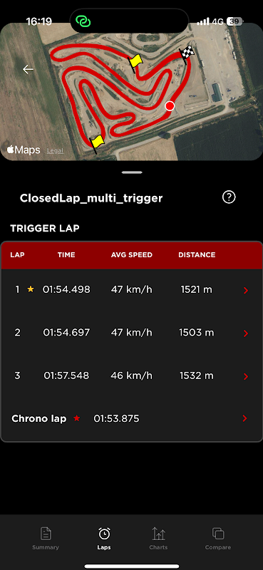 BYB Chrono pozwala śledzić i porównywać swoje czasy w najbardziej efektywny i łatwy sposób. Posiada bardzo dokładny GPS obsługujący wiele konstelacji i częstotliwość aktualizacji 25 Hz.
