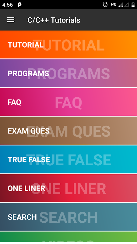 This App also clearly divide C++ Programming Language Bascis , Tutorials , Reference, Online Pages and Articles.
