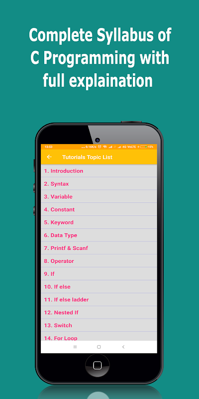 Jest to jedyna aplikacja, w której możesz nauczyć się całego sylabusa języka C za pomocą samouczków, programów oraz pytań i odpowiedzi podczas wywiadu.