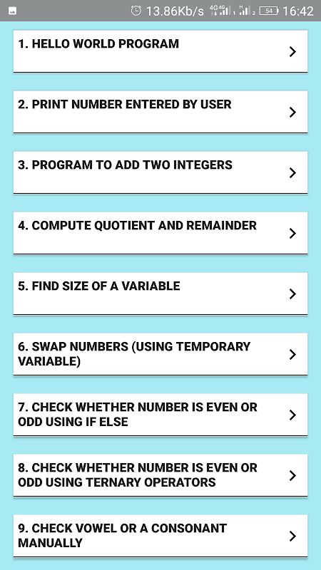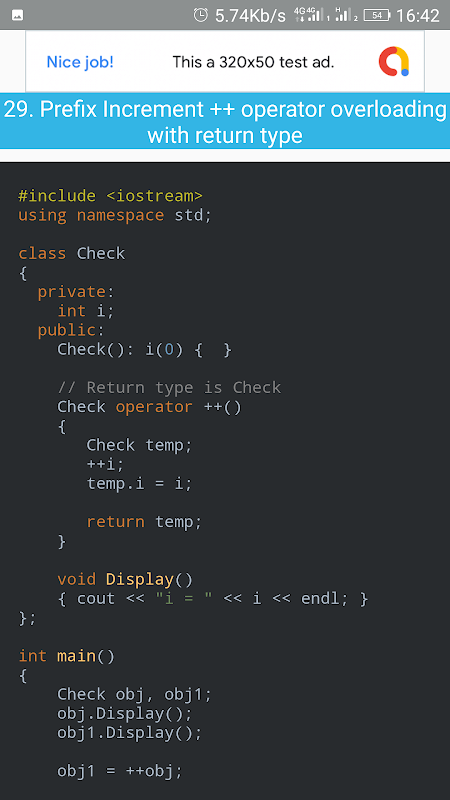 Programy w C ++ pomogą uczniom i osobom odświeżającym, którzy szukają pracy lub zdają egzamin z C ++. Jest także przydatny dla programistów, którzy chcą zaktualizować swój język programowania C ++. W tej aplikacji otrzymasz ponad 100 programów w C ++ i wyjście.