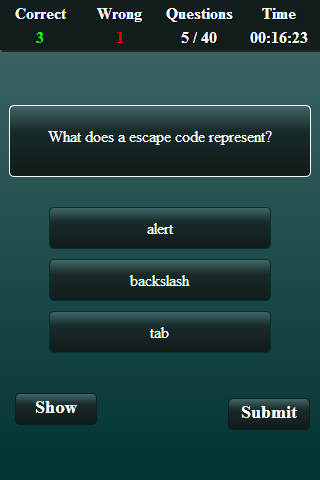 This C++ Programming testing app has been designed in the best possible manner so that the user can constantly improve his/her knowledge about the subject. This C++ Programming testing application suits for all lower, intermediate and higher levels as this application carries a combination of questions for testing the user from the basic level to the highest level. The questions in each level will be displayed randomly.