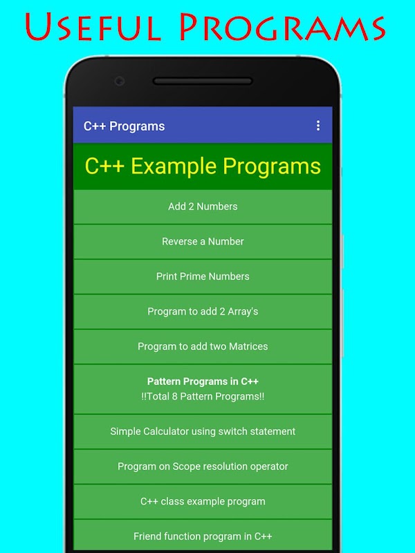 Stąd C ++ programy będą zawsze pomóc w programowaniu, jak C ++ jest rosnąca językach musimy pamiętać wszystkich technik i etc, które jest łatwe, gdy masz tę aplikację w kieszeni.
