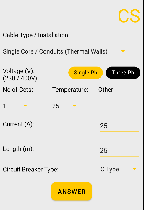 Calculate the Cable Size, additional CPC and Circuit Breaker Size for Single Core Cables and Multi Core Cables!