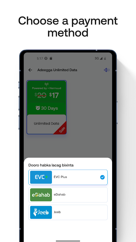 Z łatwością uzyskaj dane sim z Hormuud, Somtel, Amtel i Somnet.