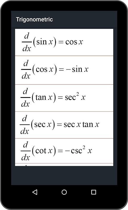 It includes Exponential, Logarithmic, Trigonometric, Inverse Trigonometric, Hyperbolic, Inverse Hyperbolic formula.