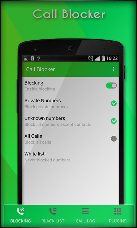 Do not let unwanted calls bother you anymore. Call Blocker helps you block unwanted calls. you can block unknown calls, block all incoming calls, block certain numbers (blacklist numbers) or allow only certain numbers (white list numbers)