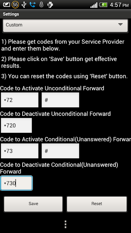 - Added code for Orange, Cricket and Hutchinson. (Cricket, Orange &Hutchinson does not support conditional forwarding with customizable seconds. Hence even if you select seconds and forward, app will forward unconditionally only.