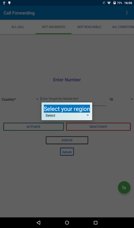 This application support call forwarding to all the GSM operators and also for various region. Forwarding call and diversion is a telephony service which redirects a incoming call to another target number, which may be, for example, a mobile telephone, voicemail box or another telephone number where the desired called party is available.