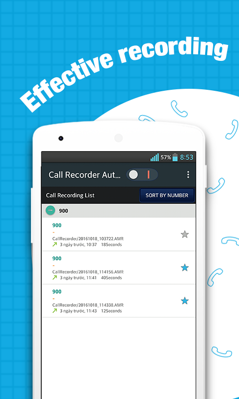 Możesz pobrać darmowe oprogramowanie do nagrywania rozmowy telefoniczne w użyciu poufne funkcje nagrywanie rozmów, najlepszy rejestrator połączeń, ukrywanie rejestrator połączeń automatycznych,. Punktem kulminacyjnym Rejestrator rozmów jest umożliwienie automatycznego rejestratora rozmów am całkowicie za darmo. I po nagraniu pliki nagrywanie rozmów może być zsynchronizowany z Dropbox lub dysk.