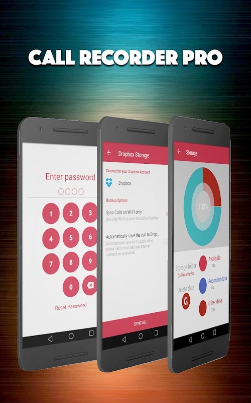 In this amazing call recorder pro app you can turn on/off automatic call recording from settings menu if you want to record all of your calls. If you don’t want to record all calls or ignore some call even if you don’t want to record your contacts call just go to settings menu and select any one option which you want to set for your call recording. Integration with Drop Box allows calls to be saved and synchronized to the cloud as well.