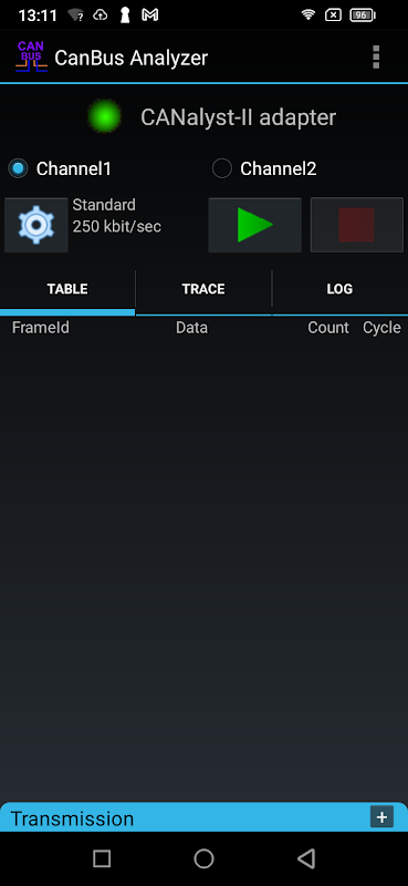 Podłącz adapter USB-CAN CANalyst-II do swojego urządzenia za pomocą kabla USB-OTG i słuchaj ruchu na magistrali CAN.