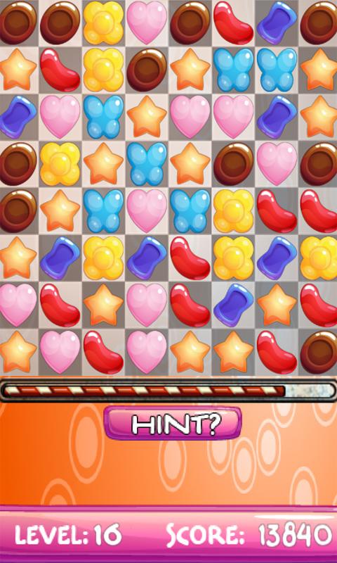 - Classic Mode: Eliminate a certain number of candy jewels each level. (10 Hints Provided)