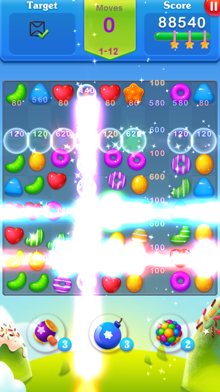 ✿ Dopasuj 4 lub więcej cukierków, aby stworzyć specjalne cukierki