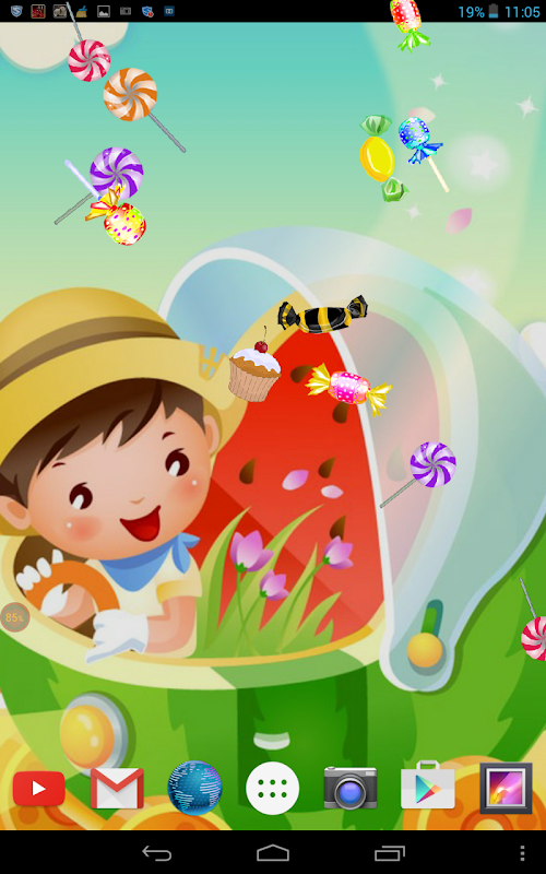 While you swipe your way through the menus of your smartphone or tablet real candy rain of sweets, chocolate sweets, lollipops, ice creams and cherry cake will fall on your screen with purpose to make you forget all your problems and feel again like a child.