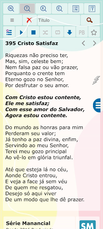Ta aplikacja oferuje również dodatkową usługę online Fonte Manancial, zawierającą ilustracje, studia audio, wersety, porady i ciekawostki. Po uruchomieniu aplikacji w trybie online, w stopce pojawi się przycisk umożliwiający dostęp do usługi z setkami studiów audio i kazań, które mogą Cię pouczyć.
