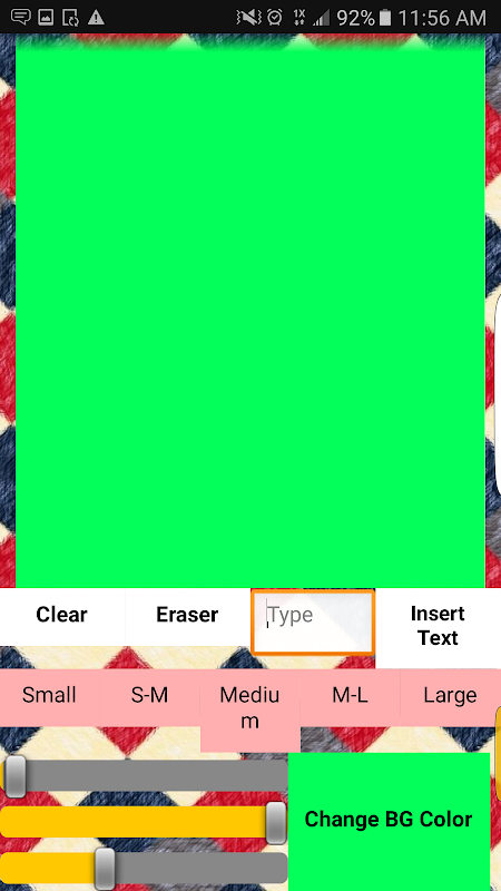 This app provides the user with customization tools such as an RGB scale to customize the color of the canvas. There are also five different pen sizes to choose from to mix up the style of how you draw. There are eight different color options for your pen as well as an eraser which is programmed to match the color of the background. You can either slide the pen to create a line or tap the canvas to create a circle which matches the size of your pen. You can also type what you want for captions that will appear on the screen. Don't worry, if you make a mistake you can always use the eraser or press the clear button to start a new creation. Have fun doodling!