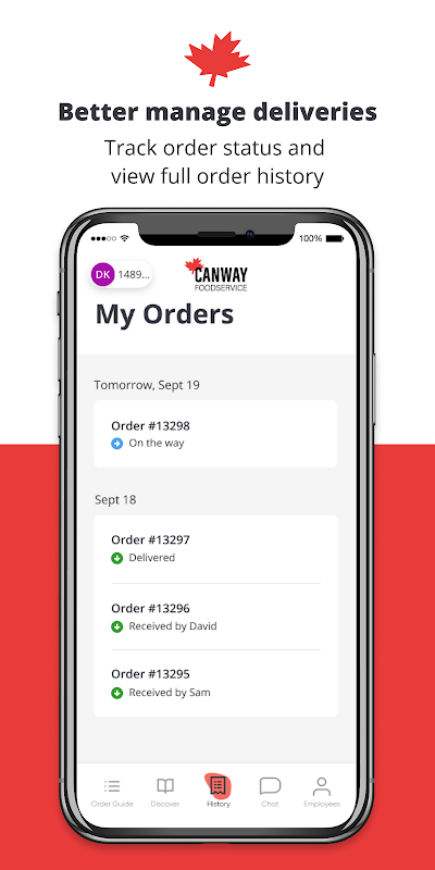 - Skontaktuj się w dowolnym momencie: komunikuj się bezpośrednio ze swoim przedstawicielem Canway Distribution w aplikacji