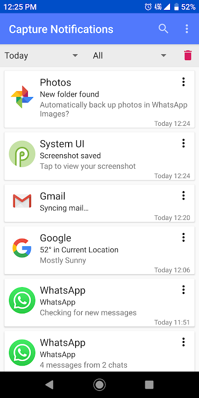 Ta aplikacja przechwytuje wszystkie powiadomienia odbierane przez telefon z Androidem i zapisuje je do późniejszego przeglądania.