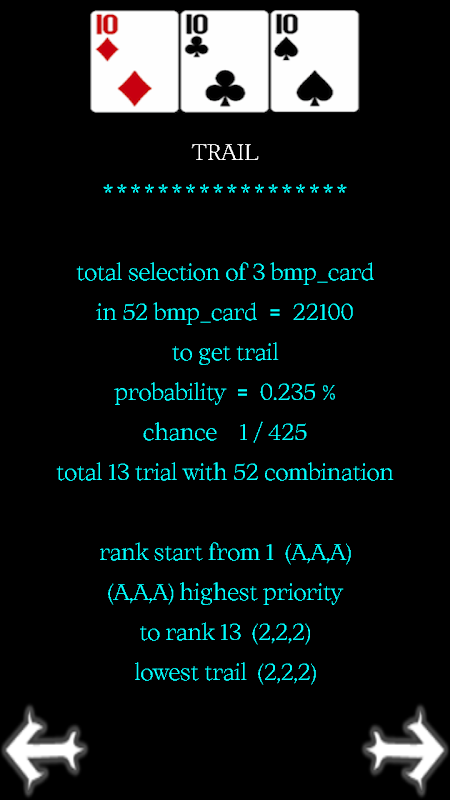 4 Gra w 1, 13 kart, 3 Patti, Prędkość mózgu, Dopasuj kartę, ranga + prawdopodobieństwo karty
