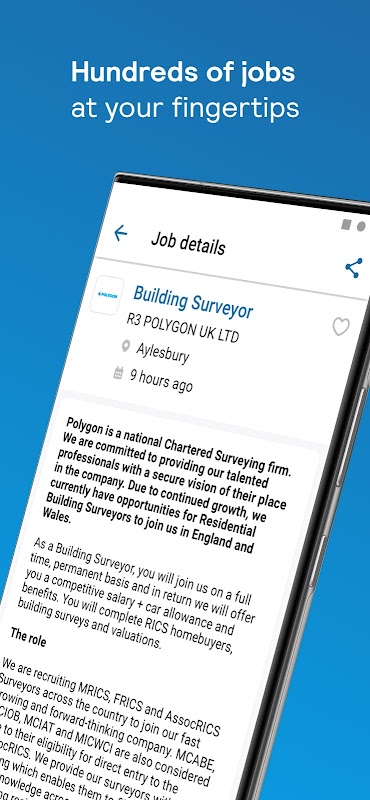 Niezależnie od tego, czy siedzisz w autobusie, spacerujesz po mieście lub w zaciszu własnego salonu, możesz wyszukać i ubiegać się o pracę za pomocą naszej aplikacji za pomocą kilku prostych dotknięć. W połączeniu z szeroką gamą natywnych funkcji zapewnia angażujący interfejs użytkownika, który poprowadzi Cię przez wyszukiwanie i zastosuje w serii szybkich i łatwych kroków.