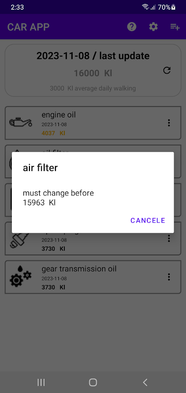 🚗 Śledź konserwację samochodu, taką jak wymiana oleju, płynu hamulcowego, opon, akumulatora i filtrów