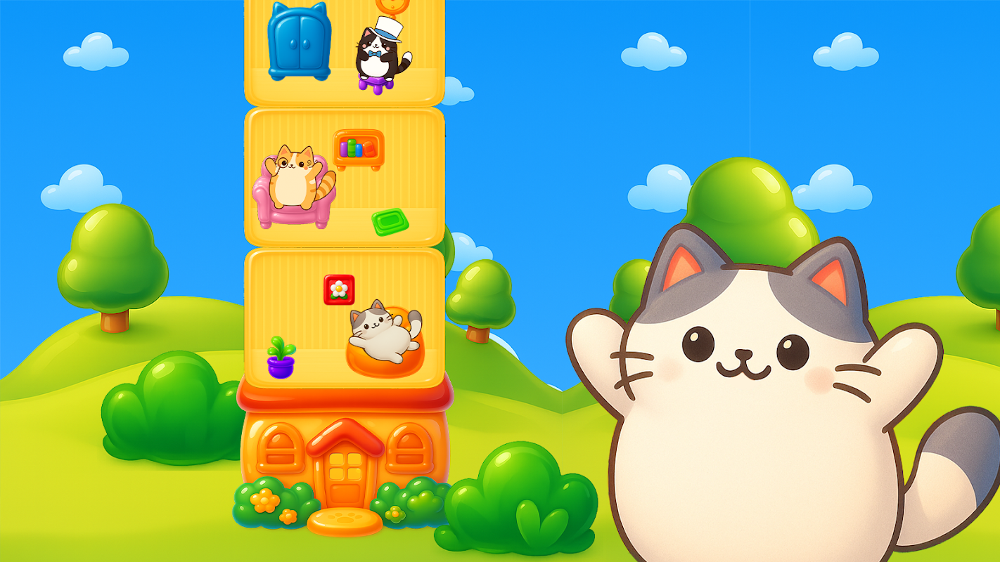 Zrelaksuj się i udekoruj swój wymarzony pokój, odblokuj urocze galaretkowe meble i spędź czas ze swoim pluszowym kocim przyjacielem w kojącym, kocim świecie.