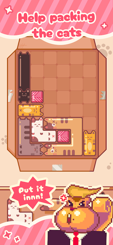 Czy możesz je wszystkie spakować? Twoim zadaniem jest obracanie i umieszczanie kotów dokładnie tak, aby wypełnić każdą przestrzeń. Dzięki proceduralnie generowanym poziomom, żadne dwie łamigłówki nie są takie same