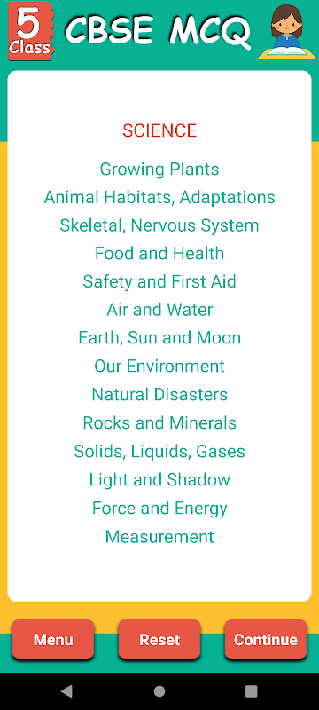 Ta aplikacja jest przeznaczona dla uczniów CBSE klasy 5. Ta aplikacja zawiera pytania związane z przedmiotami klasy 5, takimi jak przedmioty ścisłe, matematyka, wiedza ogólna, komputer, hindi i angielski
