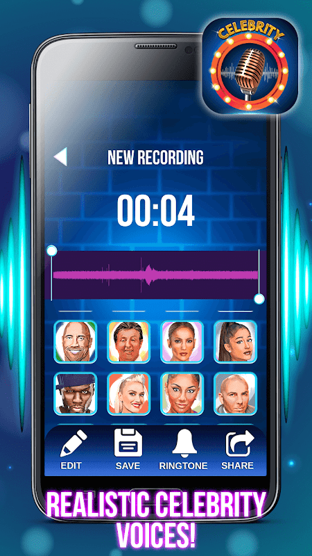 Jeśli chcesz mieć dobrą zabawę i przekształcić swój głos w fantastyczne efekty dźwiękowe supergwiazd, nowy 🌟🎤 Celebryci dyktafon - Zmieniacz dźwięku 🎤🌟 to doskonały wybór! Znajdziesz niesamowitą kolekcję bezpłatnych efektów dźwiękowych do sławnych rozmów prank! Teraz każdy może wydawać się sławną gwiazdą i nikt cię nie rozpozna! Ten śmieszny changer głosu celebrity z zabawnymi efektami dźwiękowymi jest dostępny do bezpłatnego pobierania, więc pospiesz się i pobierz teraz!