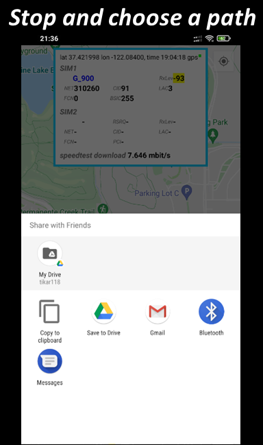 With this application, you can record all parameters of the cellular network and send to the operator for processing and analysis.