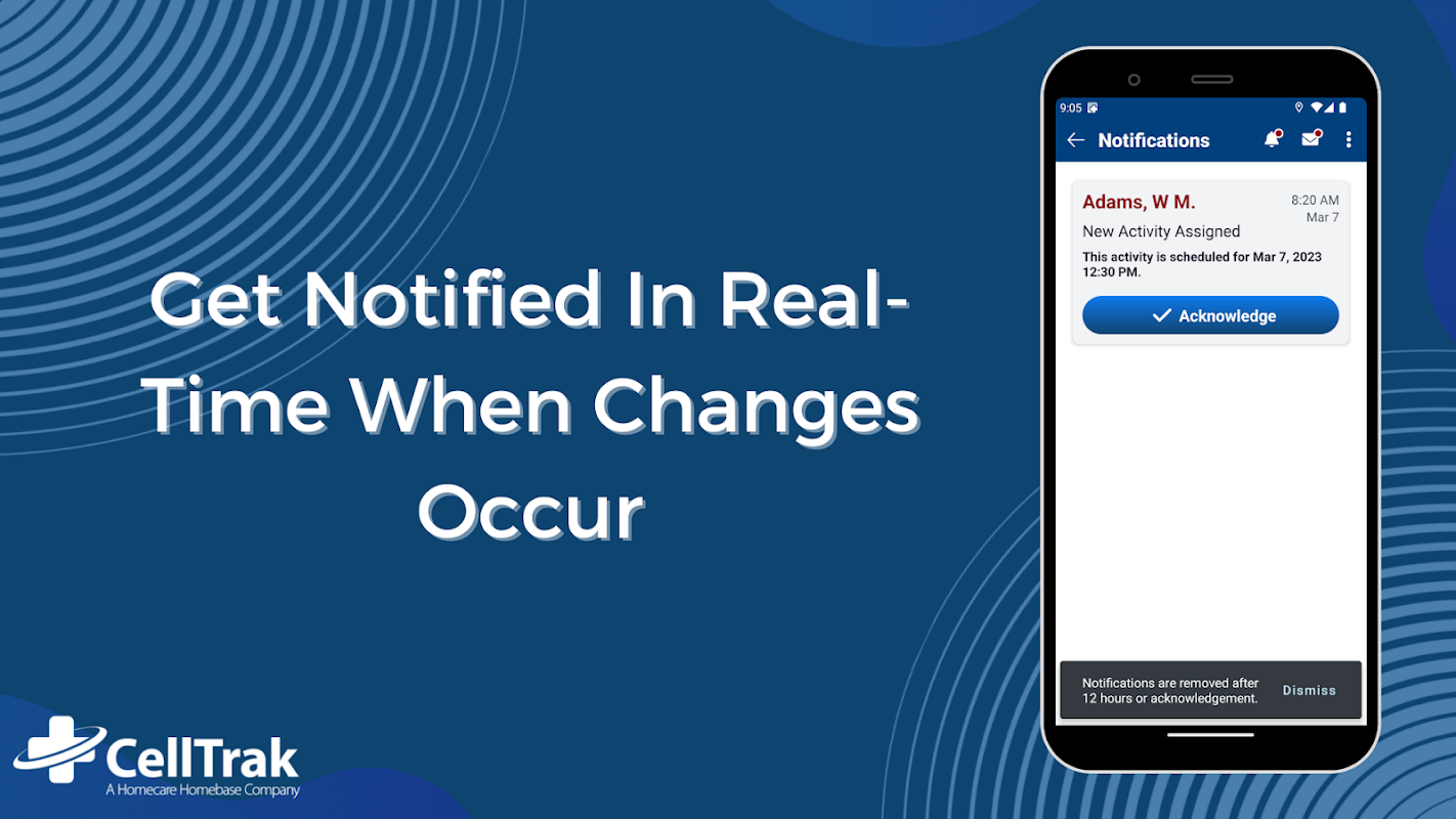 Z CellTrak, pracownicy zyskają natychmiastowy dostęp do szczegółowych planów opieki klientów, umożliwiając im dokument i sprawdzić elektronicznie w punkcie opieki. Zespoły opieki mogą korzystać zautomatyzowanych raportów, alertów i komunikatów pacjenta w celu zminimalizowania zadań manualnych, dotrzeć do większej liczby klientów z powodzeniem i poświęcić więcej trenerski talent klinicznego i do klientów, którzy ich najbardziej potrzebują. CellTrak usprawnia dostarczanie plan opieki i weryfikacji, a jednocześnie poprawy przestrzegania swojej agencji i spisu.