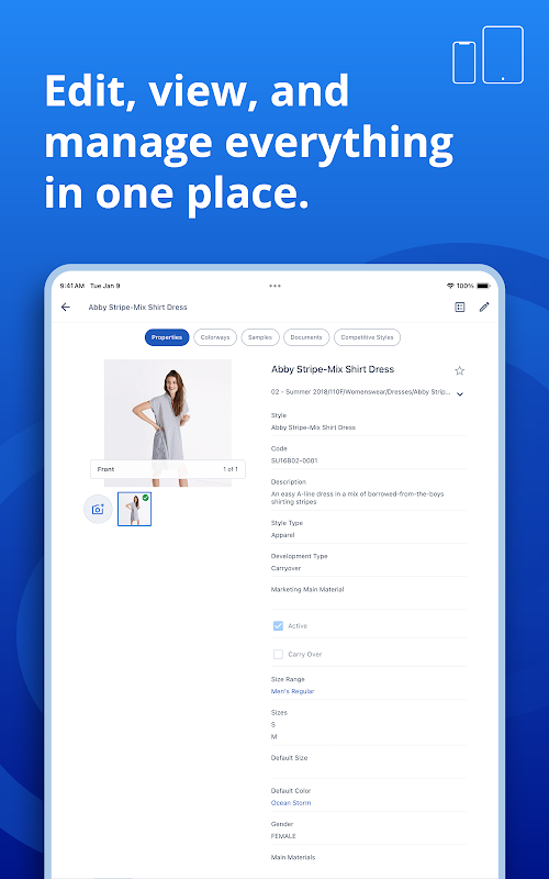 Centric PLM łączy w jednej aplikacji wszystkie możliwości narzędzi Centric PLM do zarządzania cyklem życia produktu. Niezależnie od tego, czy jesteś marką, sprzedawcą detalicznym, producentem czy dostawcą, zachowaj produktywność w dowolnym miejscu dzięki intuicyjnemu interfejsowi, bogatym funkcjom i usprawnionym przepływom pracy stworzonym do współpracy w czasie rzeczywistym.