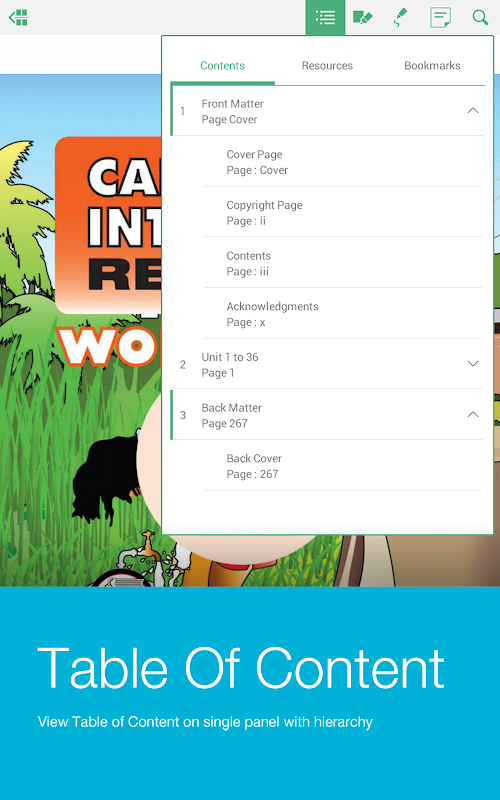 CEP is an interactive eBook Reader App. The App comes in a refreshing eBook Interface, book download capabilities and a host of features to enhance your learning. It seamlessly integrates with images, videos, activities,etc., for an engaging eBook reading experience.