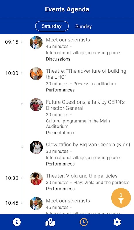 Aplikacja CERN Open Days dostarczy Ci praktycznych informacji i pokaże interesujące punkty odwiedzin, możliwe miejsca parkingowe oraz miejsca, w których można kupić jedzenie lub napoje. Dzięki dokładnej mapie nigdy się nie zgubisz.