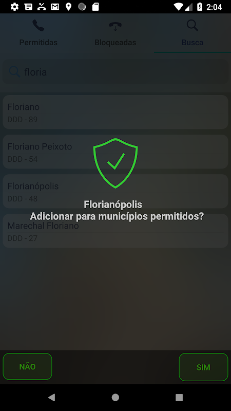 Pois bem, diferente dos demais aplicativo de bloqueio, o aplicativo "Chamadas Permitidas" usa um sistema de lista permitida, você adiciona os municípios para uma essa lista, então você recebe somente ligações dos municípios que pertencem ao mesmo DDD.